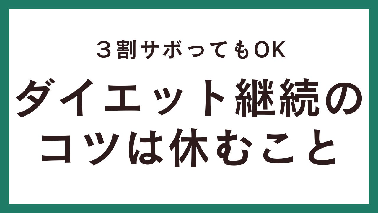 これは専門用語で”ダイエットブレイク”と言われるもので、例えば定期的に維持カロリーにしたり、ダイエットという認知的努力を一切やめることを指す。