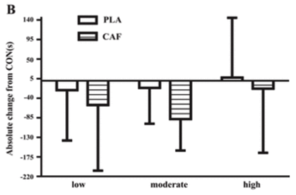 - どちらのグループもカフェインはプラセボよりもパフォーマンスを向上させた