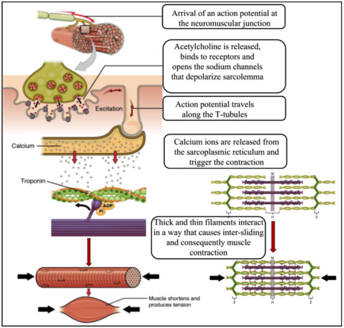 そのアセチルコリンが筋肉細胞に到達すると、筋肉からカルシウムイオンが放出される。