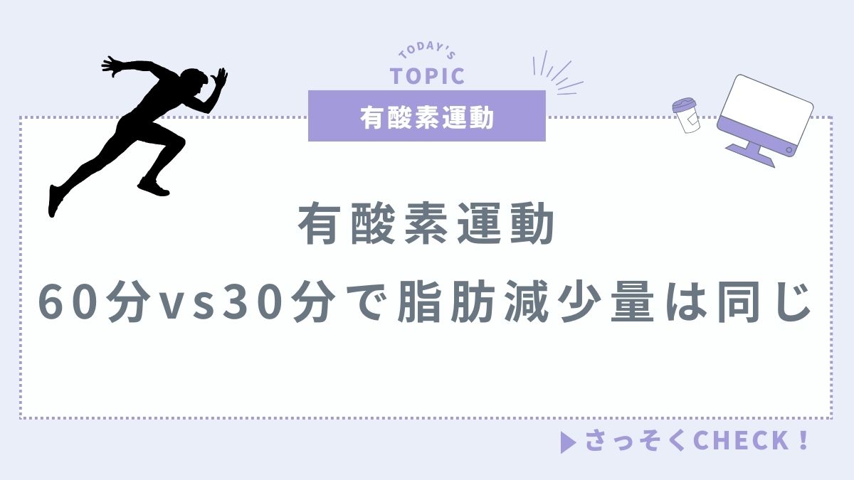 - 有酸素運動を1日あたり30分vs60分で脂肪減少量は変わらなかった