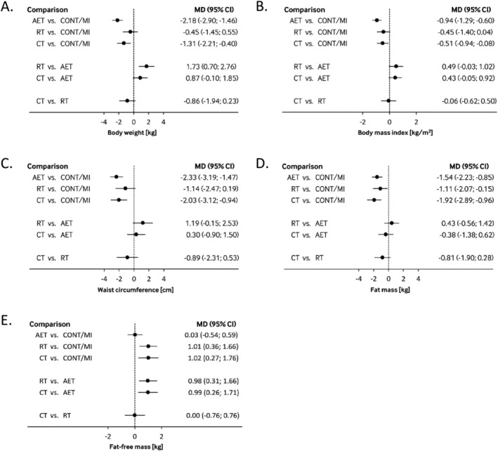 2. Morze J, Rücker G, Danielewicz A, Przybyłowicz K, Neuenschwander M, Schlesinger S, et al. Impact of different training modalities on anthropometric outcomes in patients with obesity: A systematic review and network meta-analysis. Obes Rev. 2021;22: e13218.